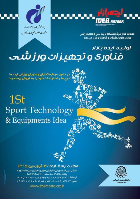 پژوهشگاه تربیت بدنی و علوم ورزشی وزارت علوم، تحقیقات و فناوری، با هدف گردهم آوردن ایده های علمی و عملی حوزه فناوری و تجهیزات ورزشی، هم اندیشی و تبادل آخرین دستاوردهای بنیادی، توسعه ای و کاربردی، همچنین توسعه ملی و بین المللی و ارتقاء سطح فناوری ها و تجهیزات ورزشی اولین رویداد ایده بازار فناوری و تجهیزات ورزشی را در اردیبهشت ماه 1395برگزار می نماید. از جمله محور های این رویداد می توان به بیومکانیک، مهندسی و فناوری ورزشی، مهندسی پزشکی، تجهیزات توانبخشی ورزشی، نرم افزارهای ورزشی، ابزارهای تمرینی و کمک تمرینی رشته های ورزشی، تجهیزات آزمایشگاهی علوم ورزشی و شبیه ساز مدل های حرکتی ورزشی اشاره کرد. حضور ایده پردازان، دانشمندان و پژوهشگران برجسته داخلی و خارجی، فرصت مغتنمی را جهت ارتقاء سطح فناوری ها و تجهیزات ورزشی فراهم خواهد آورد.