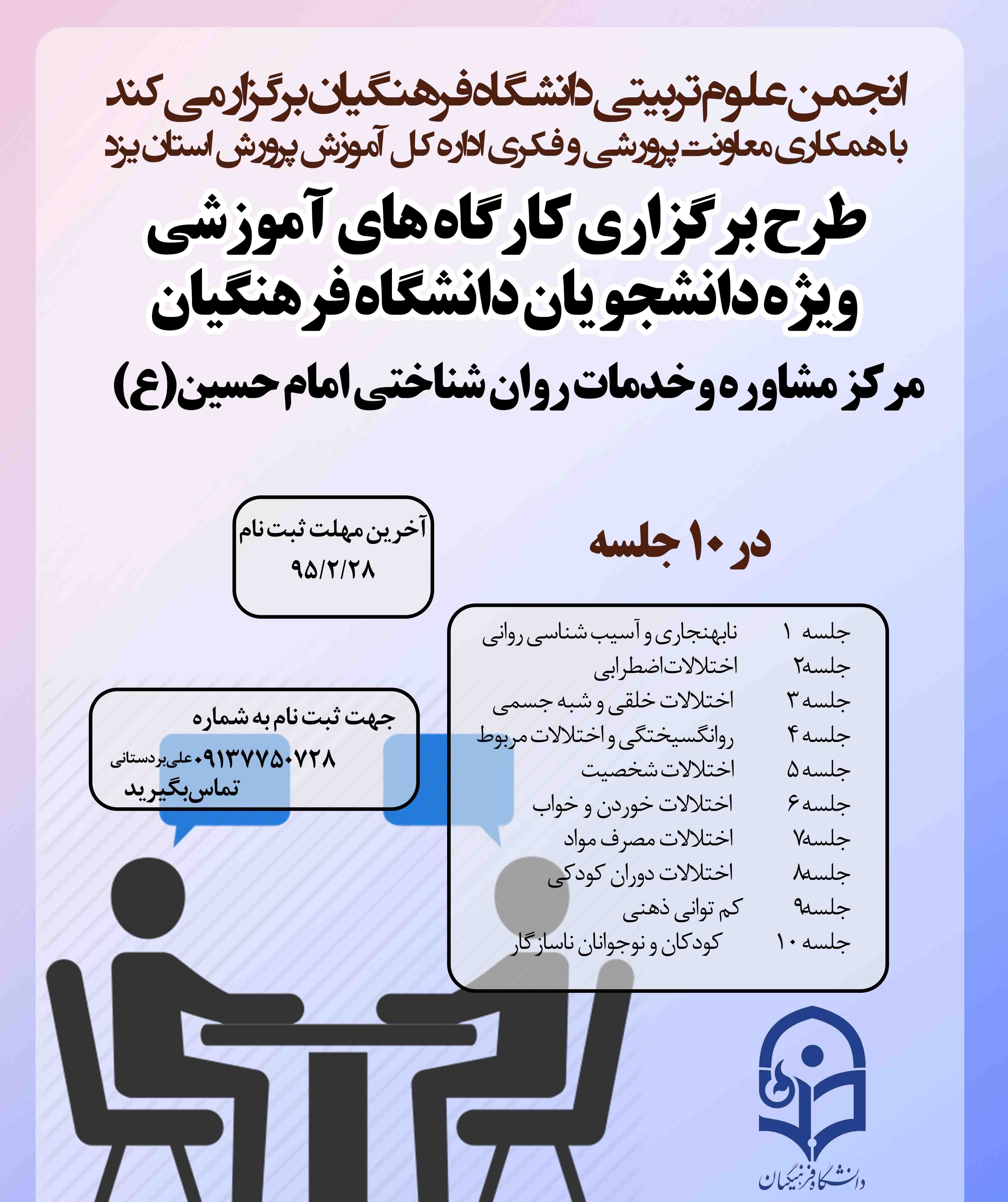 محل برگزاری : مرکز مشاوره و خدمات روان شناختی امام حسین (ع)